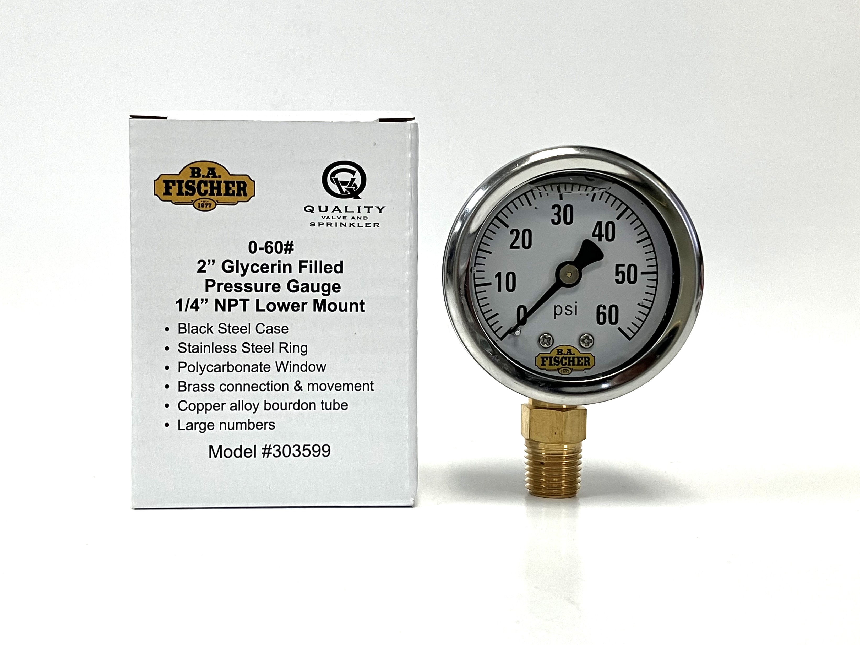 2″ liq filled ga / blk stl cs / 1/4″ lwr conn / 0-60#